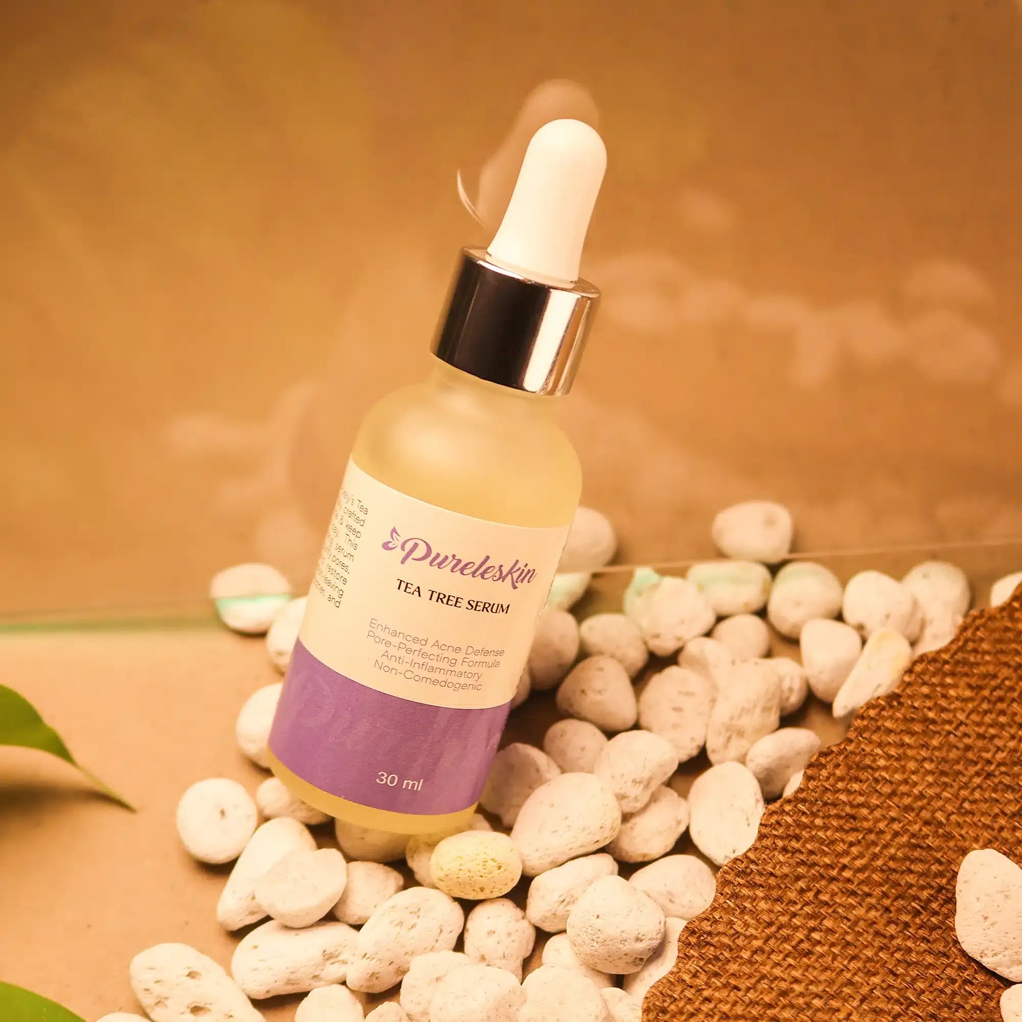 - Apply Serum: Dispense 2-3 drops of Purele Tea Tree Oil Serum onto your fingertips and gently pat into your face and neck. Avoid rubbing.